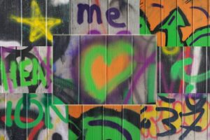 to deface: to damage the surface of something by writing on it.